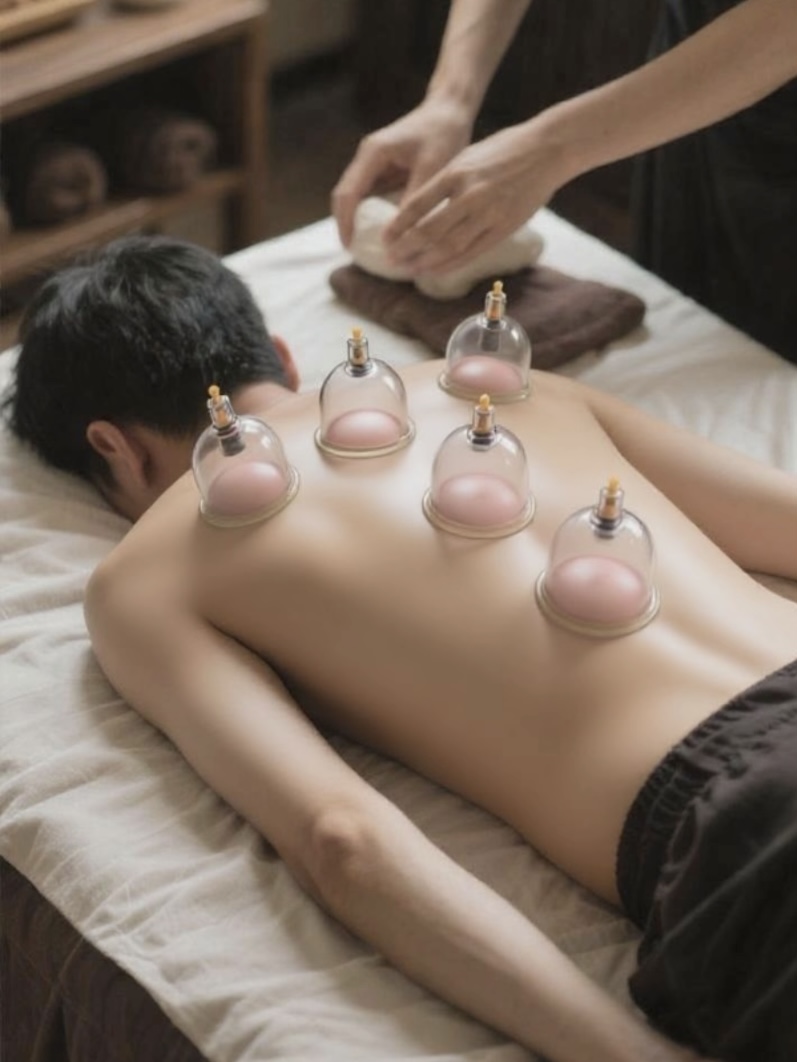 A traditional practice where suction cups create a therapeutic pull on the skin, relieving tension, enhancing circulation, and aiding in holistic well - being.